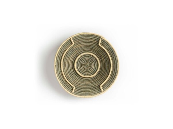 Handwoven raffia wall basket made in Uganda, inspired by traditional bread baskets. Ethically handcrafted and Nest Seal of Ethical Handcraft certified.