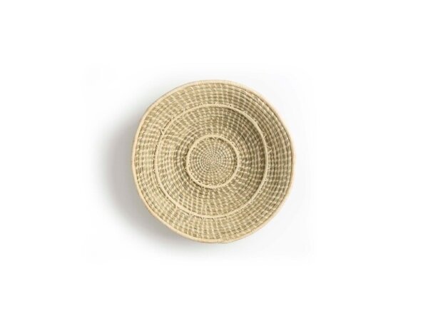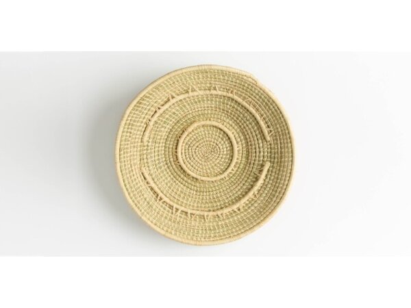 Handmade Ugandan raffia wall decor inspired by traditional bread baskets, each one-of-a-kind. Certified by the Nest Seal of Ethical Handcraft; hanging hardware not included.