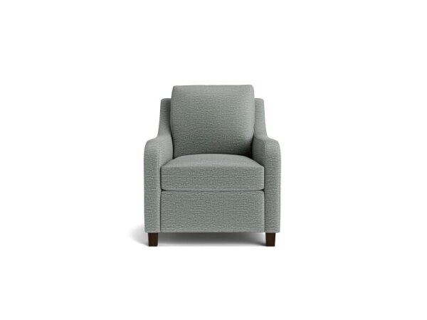 Leather lay-flat manual recliner with track arms, channeled headrest, and tapered wood legs for a clean accent-chair look. Optional tall back and power, USB port, and 30 in. W x 40 in. D x 42 in. H.