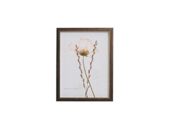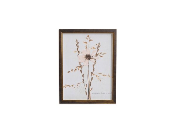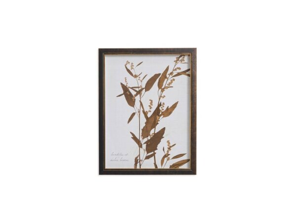 Sepia-toned botanical framed wall art featuring a pressed wildflower on an antiqued background, with a black-and-gold frame. Designed, printed, and assembled in the USA.