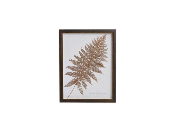 Sepia-toned botanical framed wall art with an antiqued background and a black-and-gold frame, arriving ready to hang. Designed, printed, and assembled in the USA.