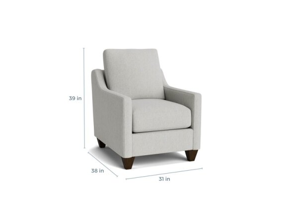 Fabric accent chair with sleek slope arms and a modern profile. Customize upholstery and seat cushion for the comfort you prefer.