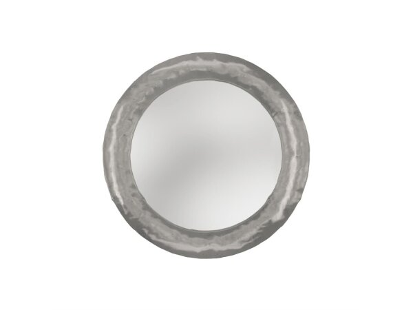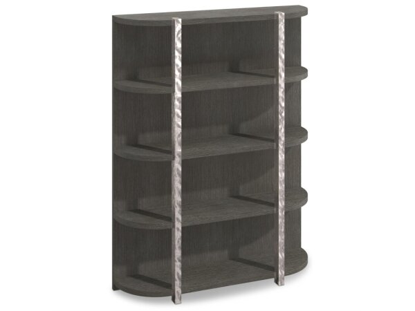 Textured metal supports gleam against the darker finish on this elegant etagere.