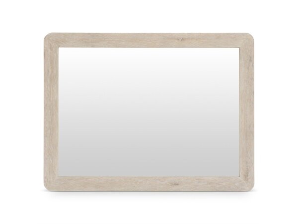 Textured wood and rounded corners offer an elemental style for this mirror.