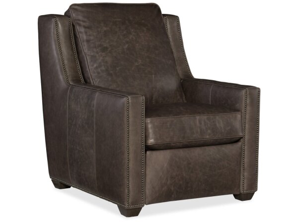 Leather stationary chair with Spring Down seat cushions over sinuous wire support for durable comfort. A semi-attached back and nailhead trim highlight its transitional design.