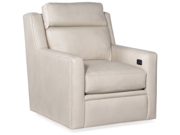 Power-reclining leather sofa with full recline and an articulating headrest. Spring Down cushions and a semi-attached back offer supportive, pillow-soft comfort.