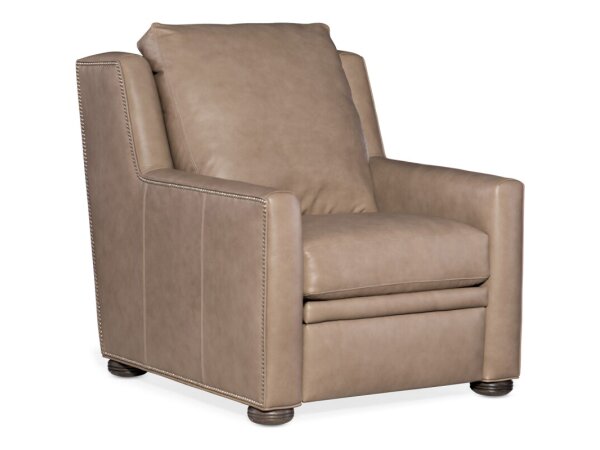 Power-reclining leather sofa with full recline and an articulating headrest. Spring Down cushions and loose back cushions provide plush, resilient comfort.