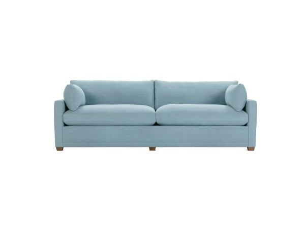 The Sylvie Everyday Denim Sofa provides two back pillows, two seat cushions, and Cloud Down standard cushions for enhanced comfort. Its deep seat and supportive arms make it ideal for relaxation.