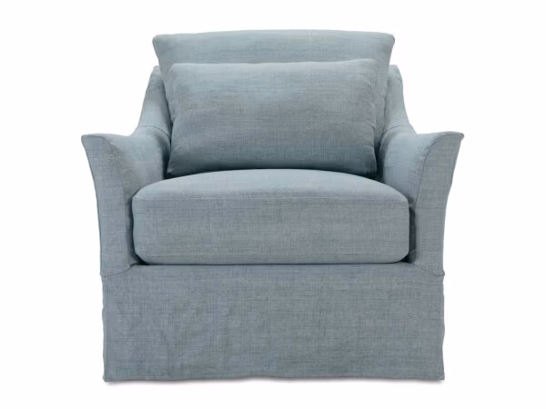 The Moreau Swivel features a Cloud Down cushion and a single back pillow, combining supportive comfort with a swivel chair mechanism.