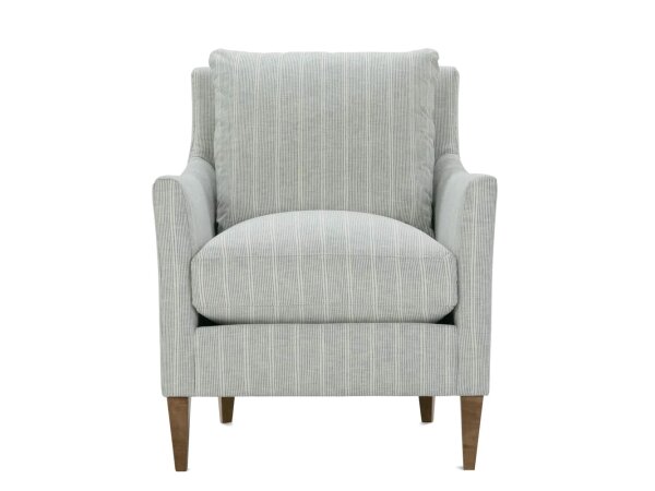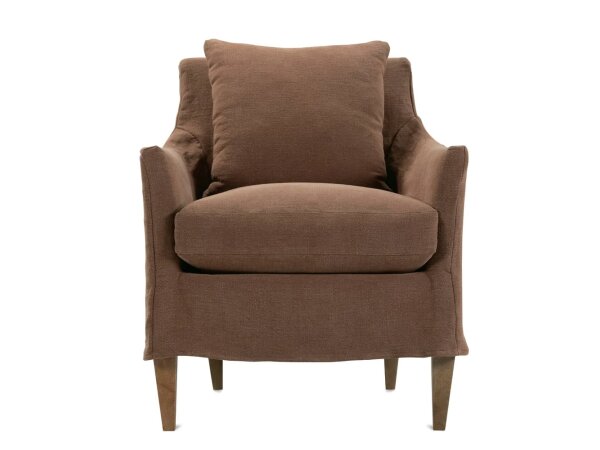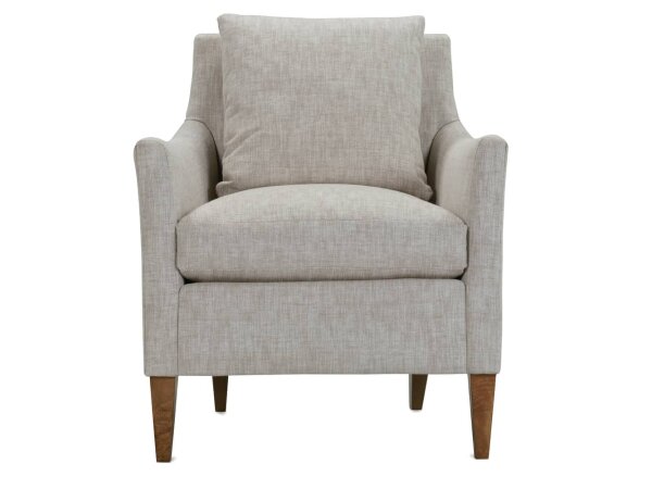The Isley Chair features a Cloud Down cushion and a single back pillow, offering supportive and comfortable seating. Its compact frame suits various living spaces.