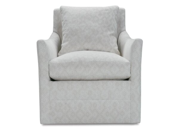 This Ingrid swivel chair with glider option features a Cloud Down cushion and a single back pillow, providing comfort and support. Its versatile design suits a variety of living spaces.