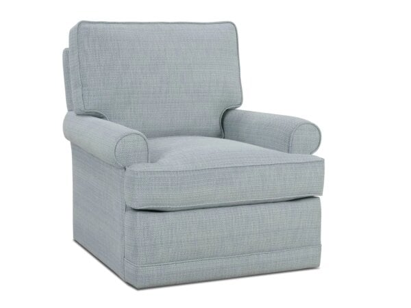 The Sully Swivel Glider Chair features a classic cushion, one back pillow, and a smooth gliding mechanism for added relaxation. Its swivel design makes it ideal for versatile seating arrangements.