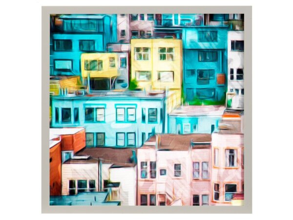 Looking At A Colorful City Ii Artist Print Faux Wood Frame Under Glass Attached