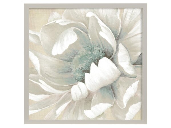White Bloom Ii Artist Print Faux Wood Frame Under Glass Attached Hanging Hardwar
