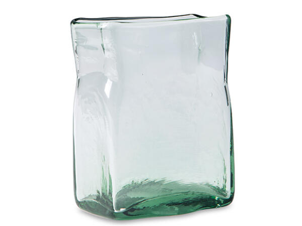 This vase, made of transparent green glass, provides a sturdy foundation for a full bouquet of your favorite long-stemmed blooms.