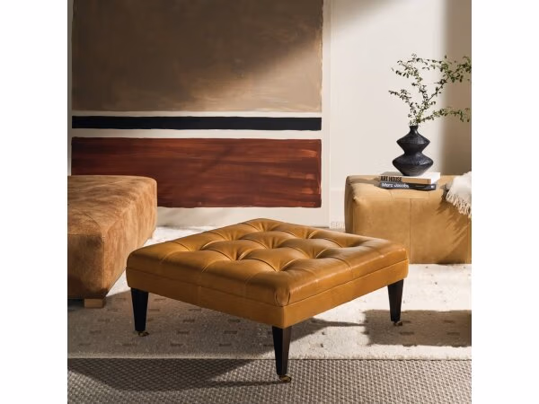 The Cyrus 36" Round Leather Storage Ottoman combines a tight seat cushion with hidden storage, offering both seating and organization. Its round leather design adds a modern touch to any room.