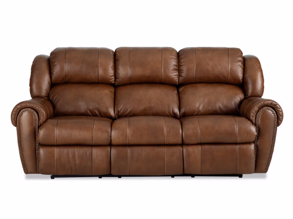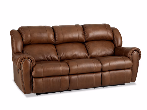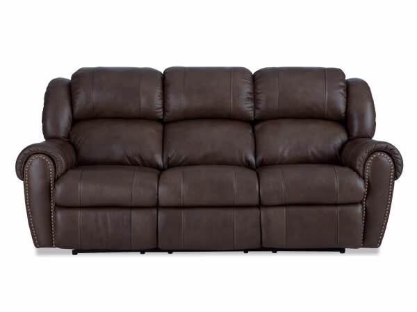 Double Reclining Power SofaTop-grain cowhide leather coverDouble needle accent stitchingNailhead trim on armsPlush, pad-over chaise leg support Features Power Yes