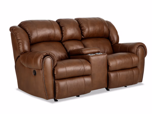 Power Console LoveseatTop-grain cowhide leather coverDouble-needle accent stitchingNailhead trim on armsPlush, pad-over chaise leg support Features Power Yes Leather Yes