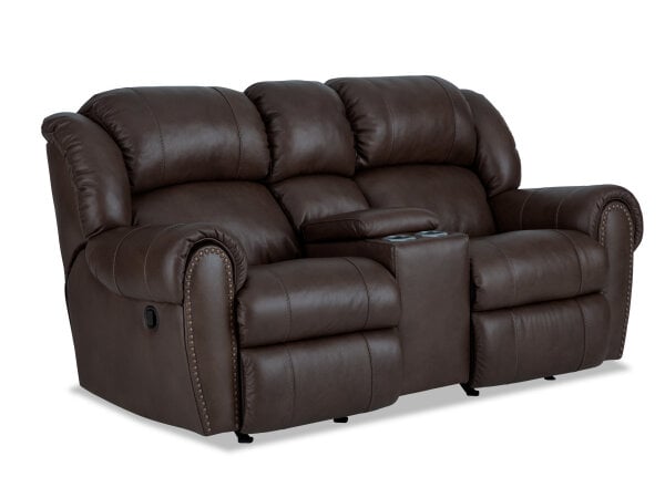 Power Console LoveseatTop-grain cowhide leather coverPlush, pad-over chaise leg supportNailhead trim on armsDouble-needle accent stitching Features Power Yes Leather Yes