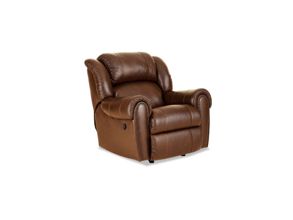Power Rocker ReclinerTop-grain cowhide leather coverDouble needle accent stitchingNailhead trim on armsPlush, pad-over chaise leg support Features Power Yes Rocker