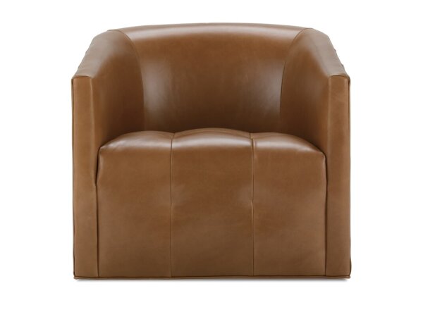 The Petra Swivel Chair features a tight seat and no back pillows, offering a streamlined and supportive seating option. Ideal for living spaces seeking a simple, functional accent chair.