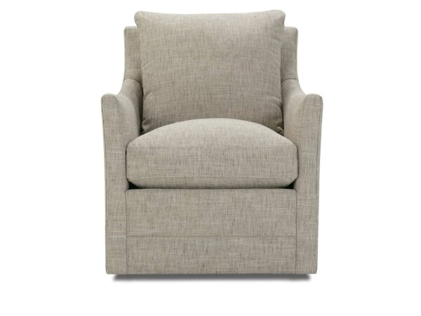 This Isley Swivel Chair with Glider Option includes a single back pillow and cushion with Cloud Down fill for comfort. The chair's swivel and glider features provide versatile movement.