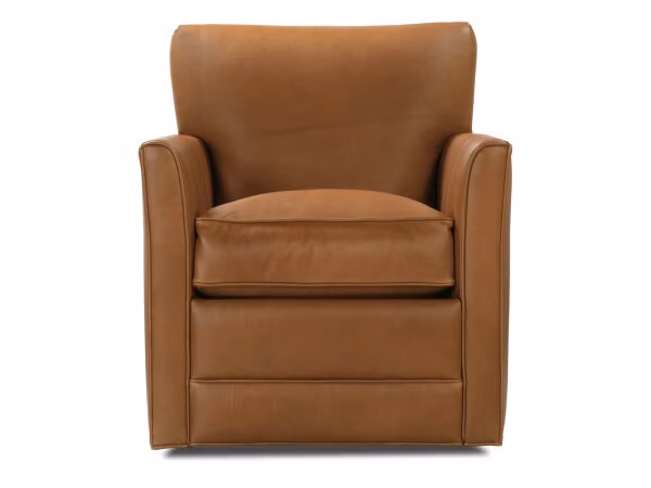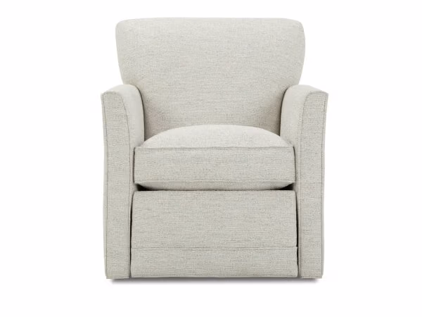 The Isley Swivel Chair with Glider Option features a single back pillow and cushion with Cloud Down fill for enhanced comfort. Its swivel and glider mechanism offers flexible seating in living spaces.