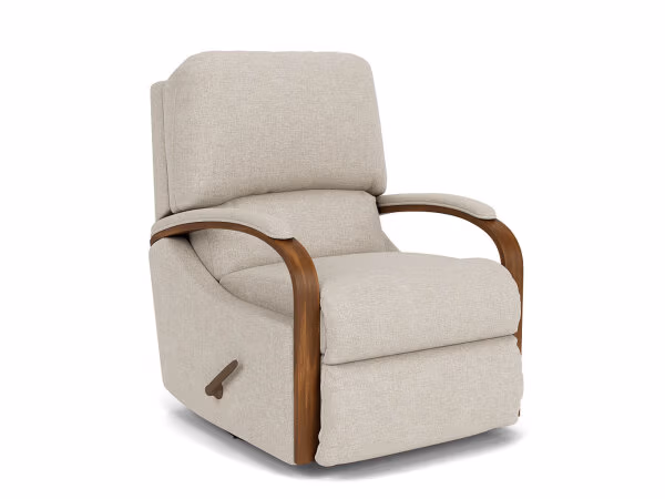 The Woodlawn recliner spotlights a beautifully curved Valencia-finished arm topped off with a soft upholstered arm cap. The comfort of