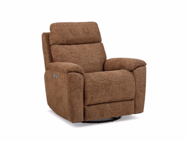 Refined Fabric Power Swivel Gliding Recliner with Power Headrest & Lumbar