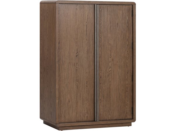 Accent your room with this European Traditional door chest, featuring a weathered brown whitewash top and antique white finish. It provides versatile storage with one drawer, three pull-out trays, and three adjustable shelves behind two wrap-around doors.