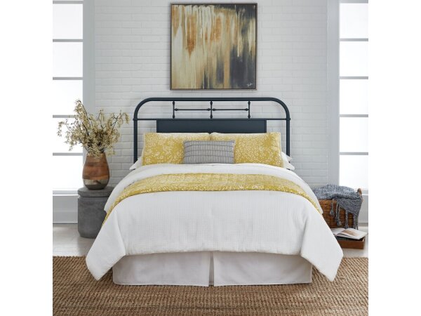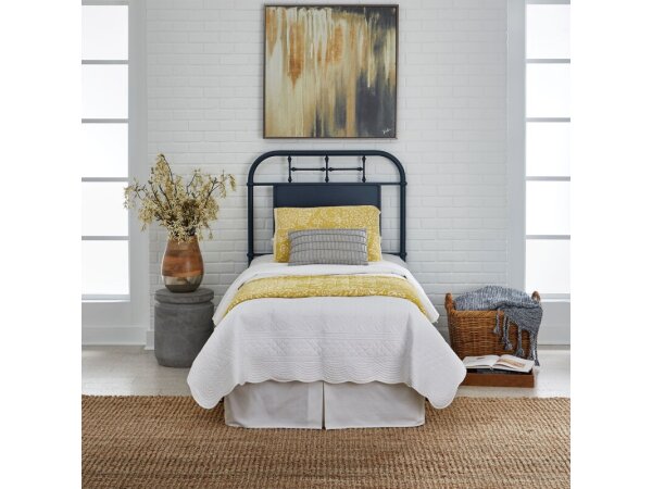 Crafted from metal tube with a distressed navy finish, this Vintage Series Full Metal Headboard features a cap rail, turned metal spindles, and a center panel. Its urban living design fits rustic, casual, and contemporary styles in small spaces.