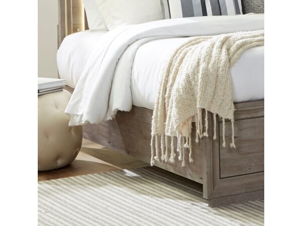 These Horizons storage bed rails feature a greystone laminate finish made from rubberwood solids and paper laminate. They are bolt-on rails designed to complement a headboard and footboard for a complete bed.