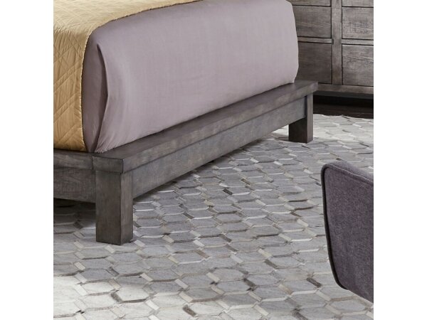 This King platform footboard features a low-profile design with block style legs, ideal for a contemporary bedroom look. It is crafted from poplar solids and knotty white oak veneers in a dusty charcoal finish.