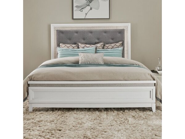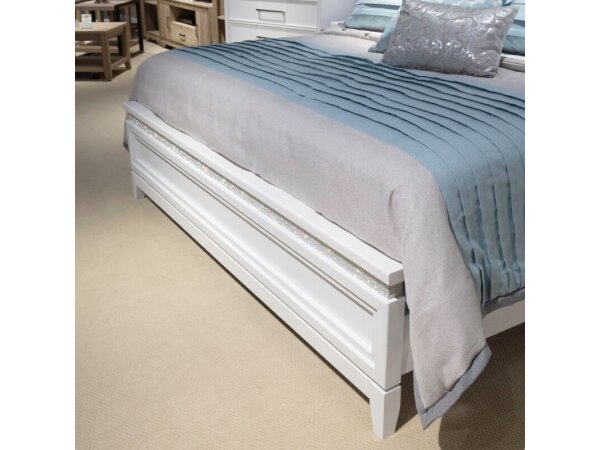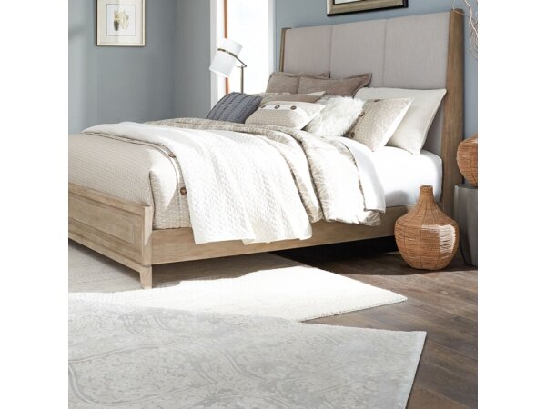 This Avalon queen storage footboard features rubberwood solids, split heart white oak veneers, and a burnished beige finish. It offers two cedar-lined storage drawers, a padded oatmeal linen upholstered bench with nailhead trim, and elegant bow shaping.