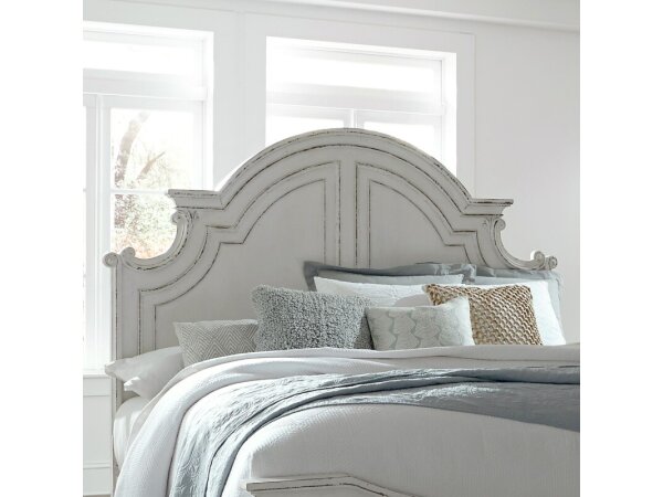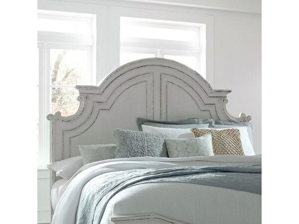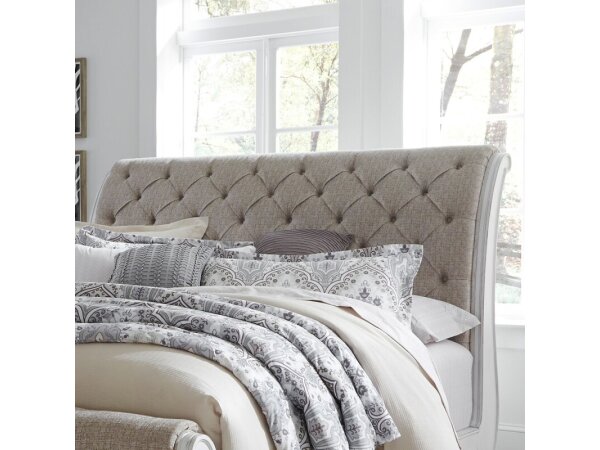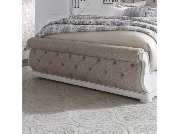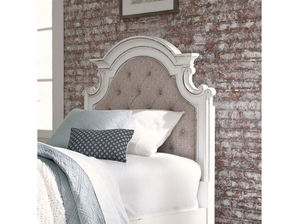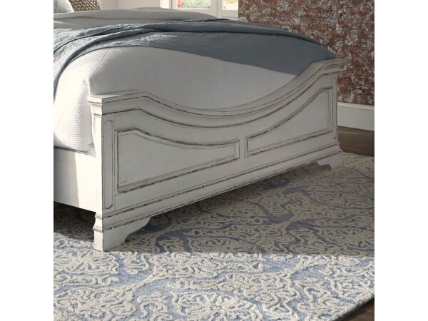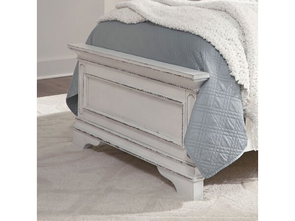 Enhance your bedroom with this Full panel footboard, offering European Traditional design and casual appeal. It features a wide cap rail, bead molding, and bracket feet, all crafted from poplar solids and veneers with a weathered brown and antique white f