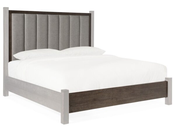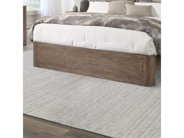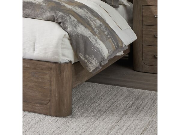 The South Bend King Shelter Footboard is meticulously crafted from Rubberwood solids and Small Split Heart Cathedral White Oak veneers, featuring a Burnished Clay finish. It offers a low-profile silhouette with softly rounded ends, designed to complement