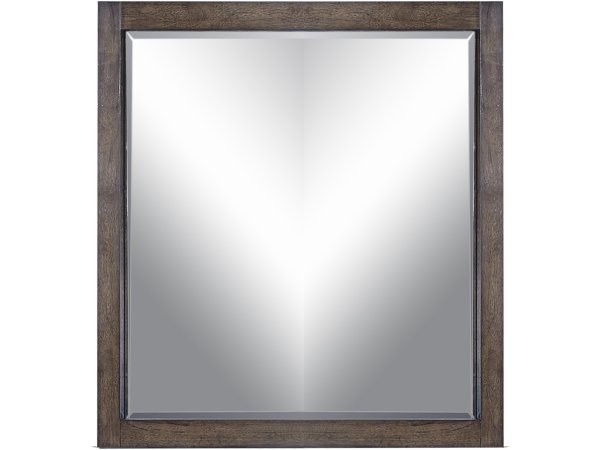 This modern landscape mirror, crafted from Rubberwood solids with a Caffe finish, features wide picture frame molding and a 1-inch beveled glass edge. It includes bolt-on supports for easy attachment to a dresser.