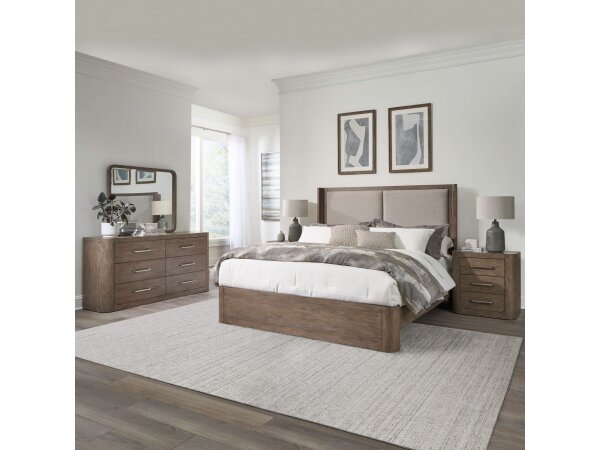 Modern Edge Queen Uph Bed, Dresser & Mirror, Night Stand