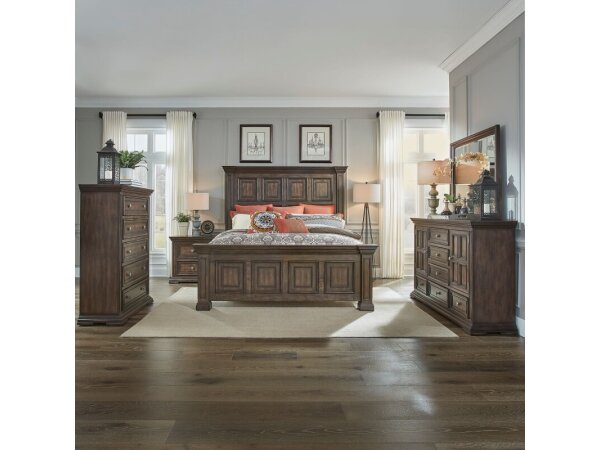 Big Valley King Panel Bed, Dresser & Mirror, Chest