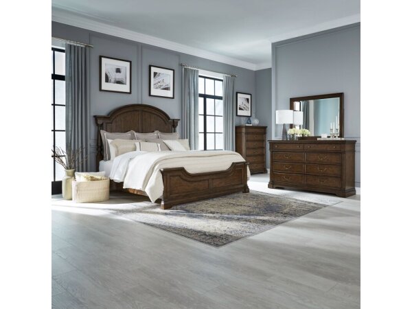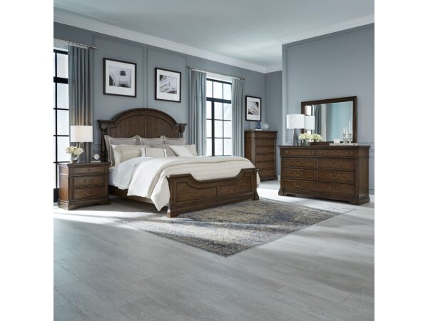 King Arched Poster Headboard,King Panel Footboard,Cal King Panel Bed Rails,8 Drawer Dresser,Landscape Mirror,6 Drawer Chest,Nightstand w/ Charging Station