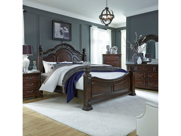 King Poster Bed, Dresser & Mirror, Chest