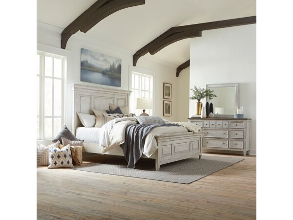 King Panel Bed, Dresser & Mirror