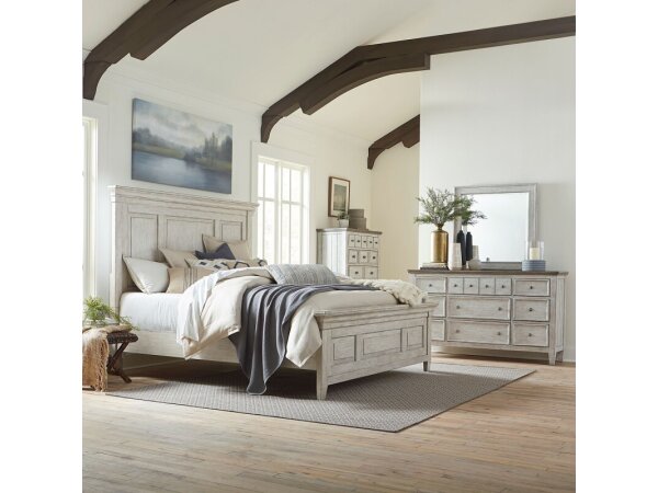 King Panel Bed, Dresser & Mirror, Chest