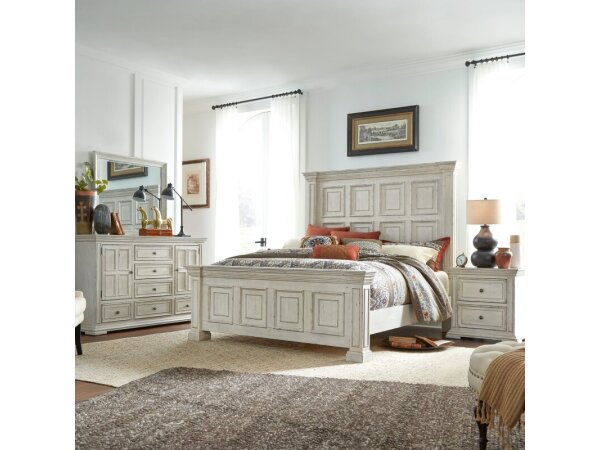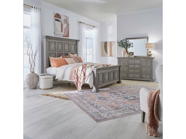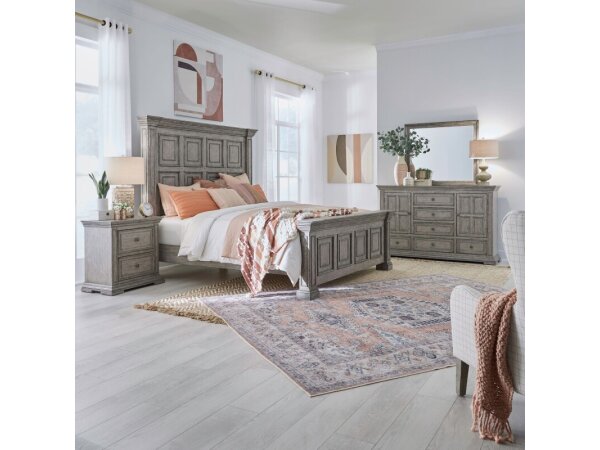 King Mansion Headboard,King Mansion Footboard,Cali King Panel Bed Rails,2 Door 6 Drawer Dresser,Mirror,5 Drawer Chest,2 Drawer Night Stand w/ Charging Station