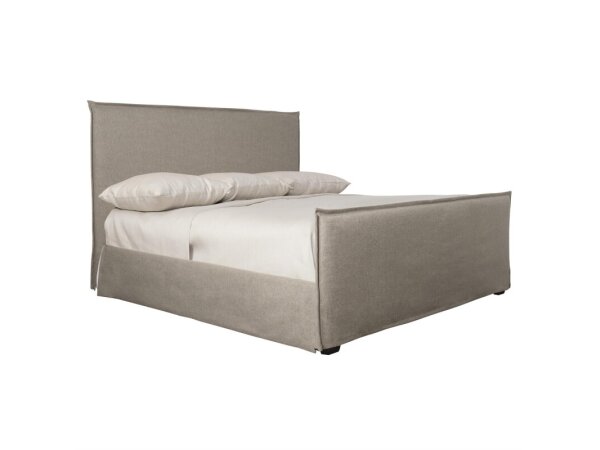 Elegant and minimalist, this transitional slipcovered bed invites sleep with a soft touch and a calming, sophisticated presence.