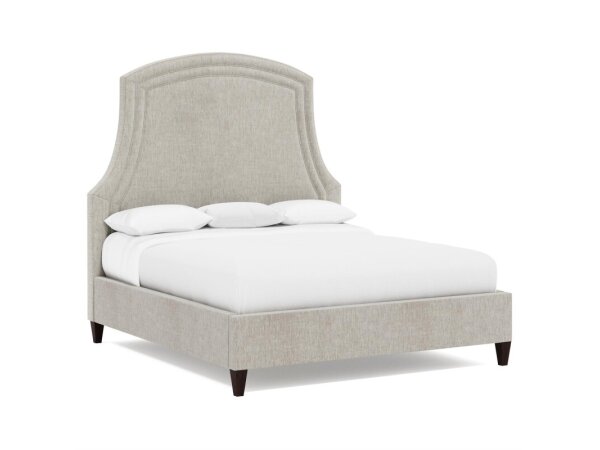 This elegant transitional bed features a tall arched headboard accented by a welt trim border.