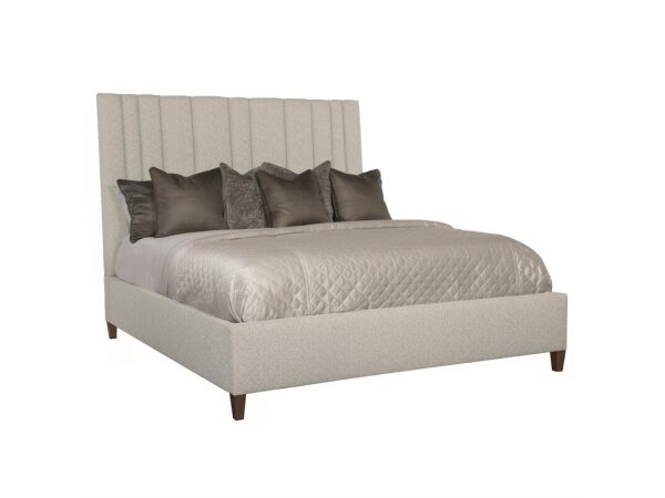 This modern upholstered bed features vertical channel tufting on its tapered headboard for a plush, luxurious look.