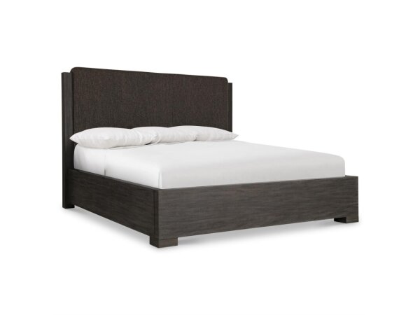 Daring shapes craft a one-of-a-kind design for this upholstered panel bed.