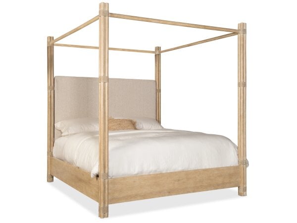 Retreat Pole Rattan Cal King Upholstered Poster Bed withCanopy