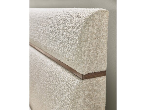A twin upholstered bed in 100% linen (Broadway Dune) with a fully upholstered frame and scalloped base for timeless, traditional style. Includes headboard, footboard, and rails.